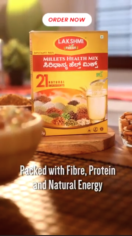 Shot in warm, natural light and rooted in earthy tones, this film captures the wholesome blend of grains, pulses, and nuts that make up Lakshmi Fresh’s Health Mix. With tight ingredient close-ups and slow-motion pours, the visuals highlight purity, freshness, and balance—positioning the mix as a nourishing, everyday choice for modern families seeking traditional goodness.